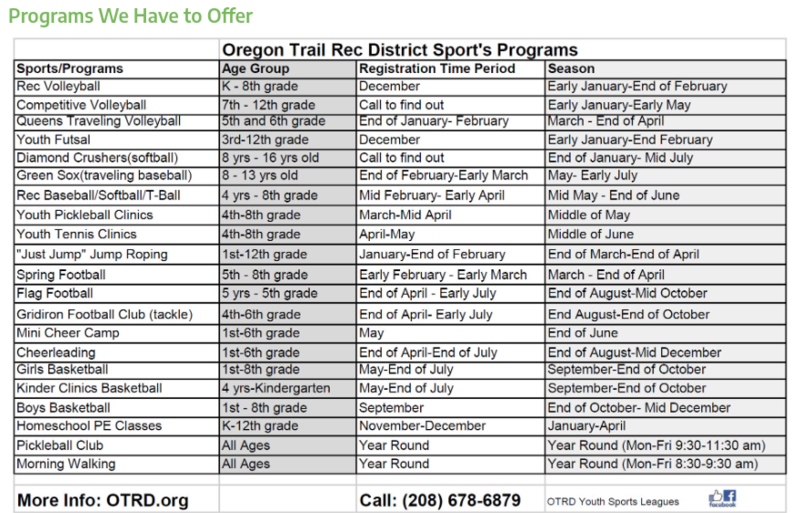 Be Involved! The Oregon Trail Recreation District offers so many fun opportunities to our community, why not be a part of the team?